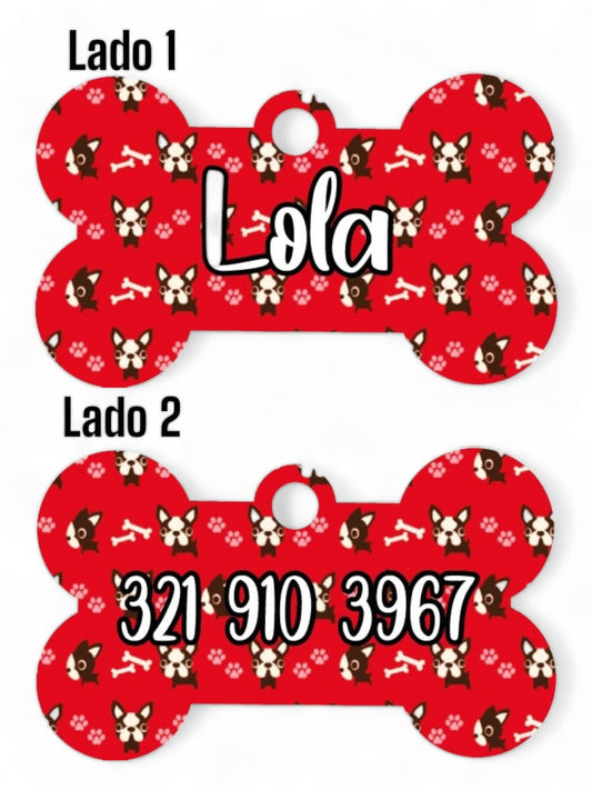 Placa Identificadora + Collar Portaplaca ref Facedog Rojo