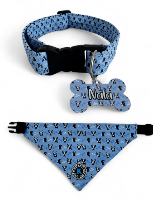 Combo Placa + Cuello portaplaca + Pañoleta Facedog Celeste