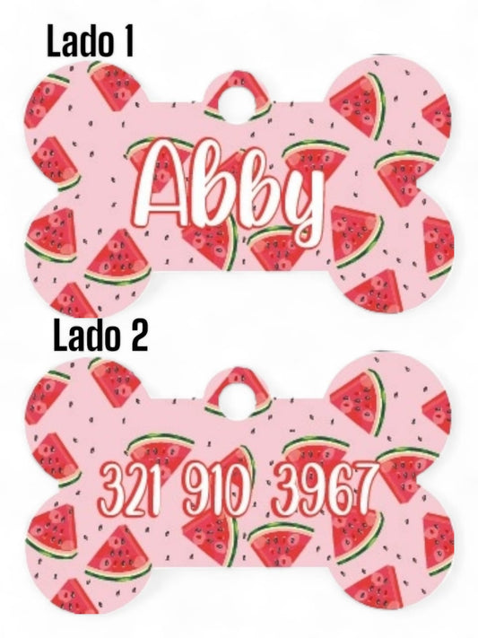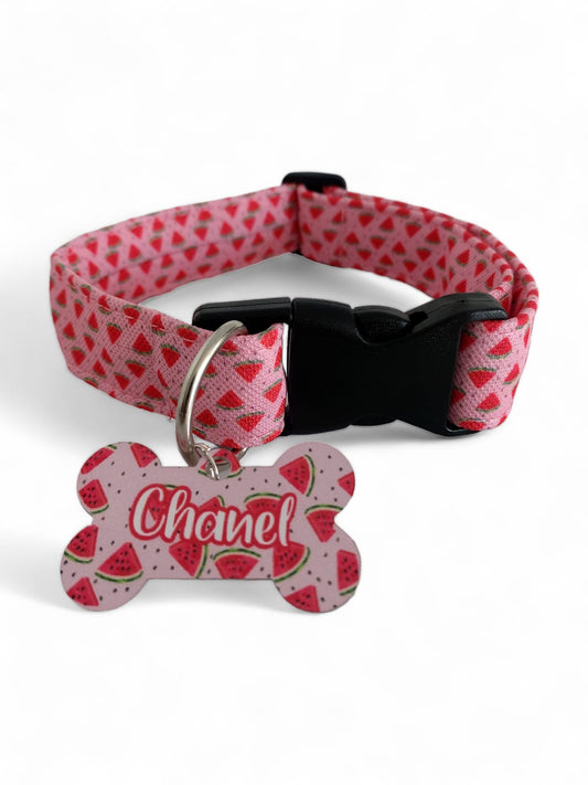 Placa Identificadora + Collar portaplaca Sandías Rosada