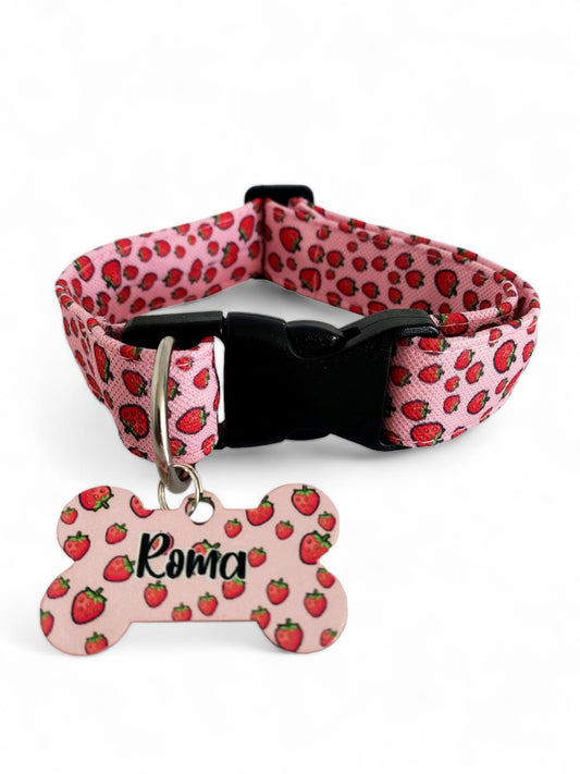 Placa Identificadora + Collar portaplaca Fresas Rosada