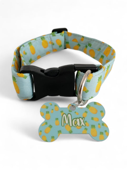 Placa Identificadora + Collar portaplaca Piñas Amarillas