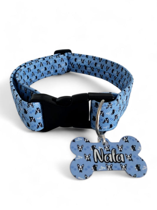 Placa Identificadora + Collar Portaplaca ref Facedog Celeste