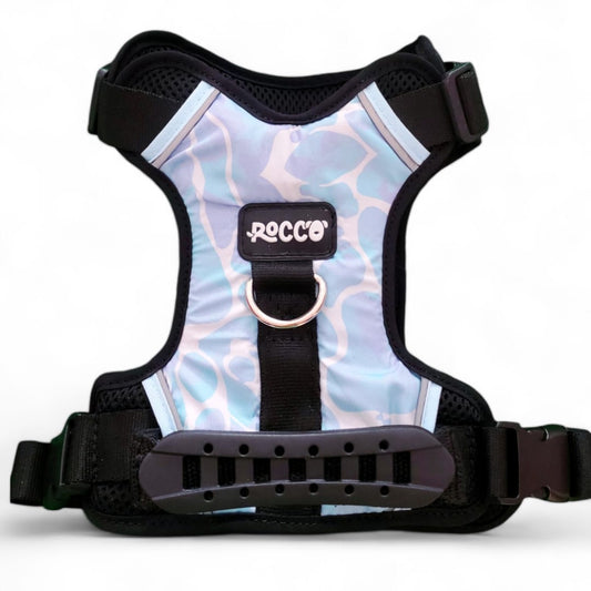 - En el caso de las pecheras tipo arnés, evitan el colapso traqueal de tu perro: la fuerza ejercida se realiza detrás de las patas delanteras del perro NO en su cuello.